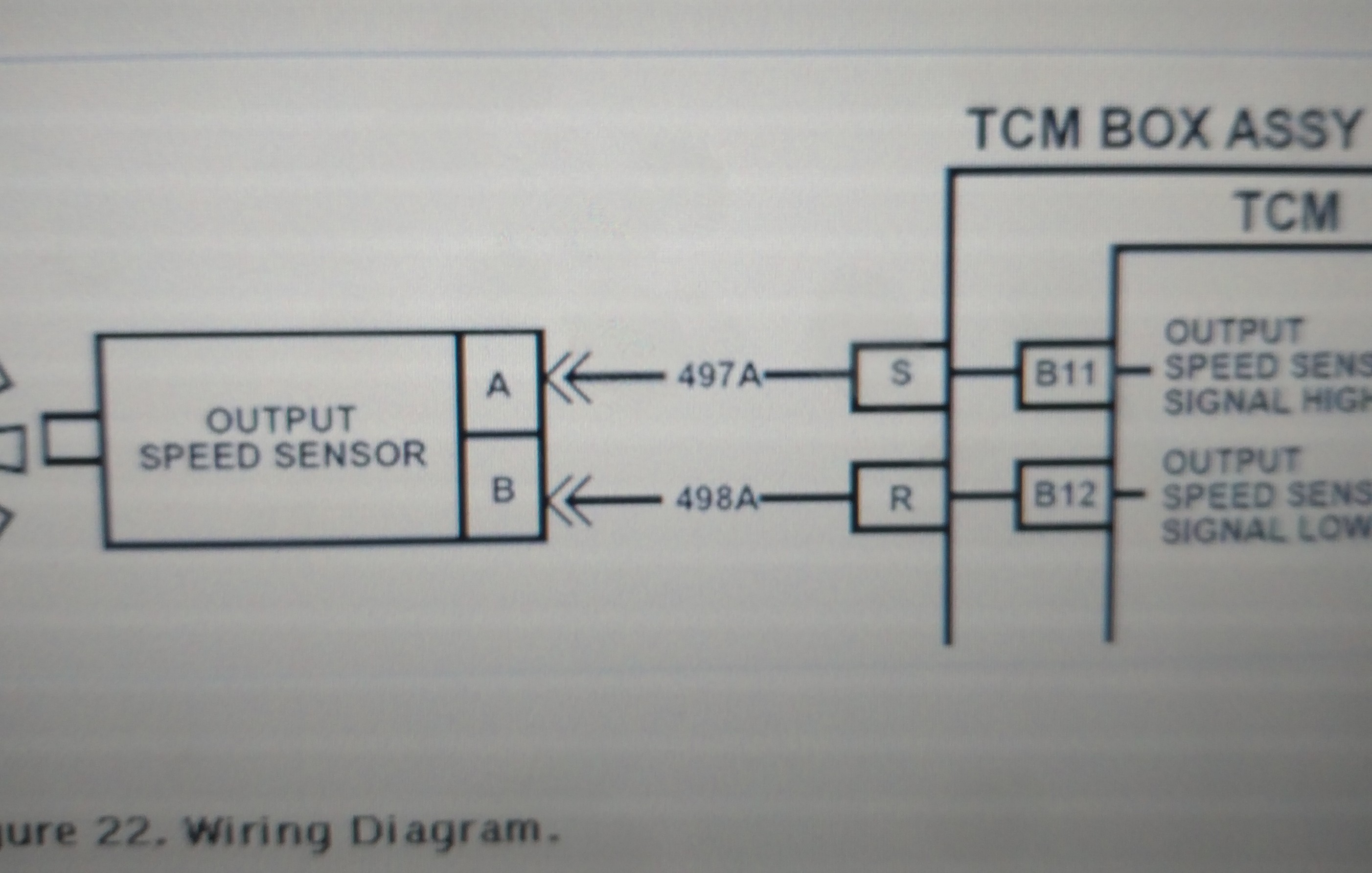 Try this. Disconnect the Harness at the TCM and test for resistance between pins R and S (SEE PIC). Should be between 1000 to 2000 Ohms. Then disconnect at the TOSS and check pin R to a ground and then S to a ground for resistance you should have around 10000 Ohms. Anything less, you have to repair those wires. Also make 1st make sure they're fully seated and making contact with the TOSS and TCM.